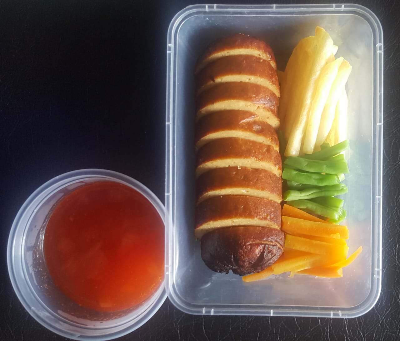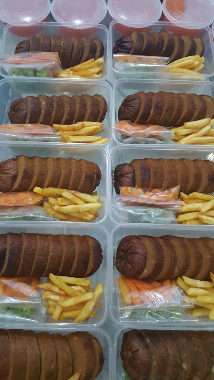 Galantine dengan sayur dan saos merah yang terbuat dari tomat asli