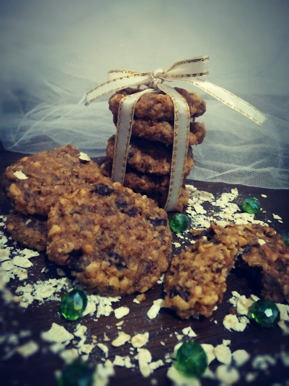 Cookies otmeal yang sehat dengan isi coklat dan kacang yang chrunchy. Sangat lezat dan cocok untuk teman ngopi atau ngeteh. One bite is never enough. (Berat per toples 250 gram)