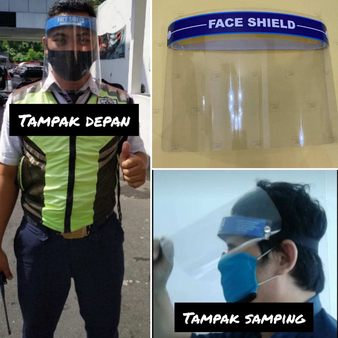 Face shield, ada ukuran untuk anak-anak. Bisa pesan menggunakan logo minimal 50 unit