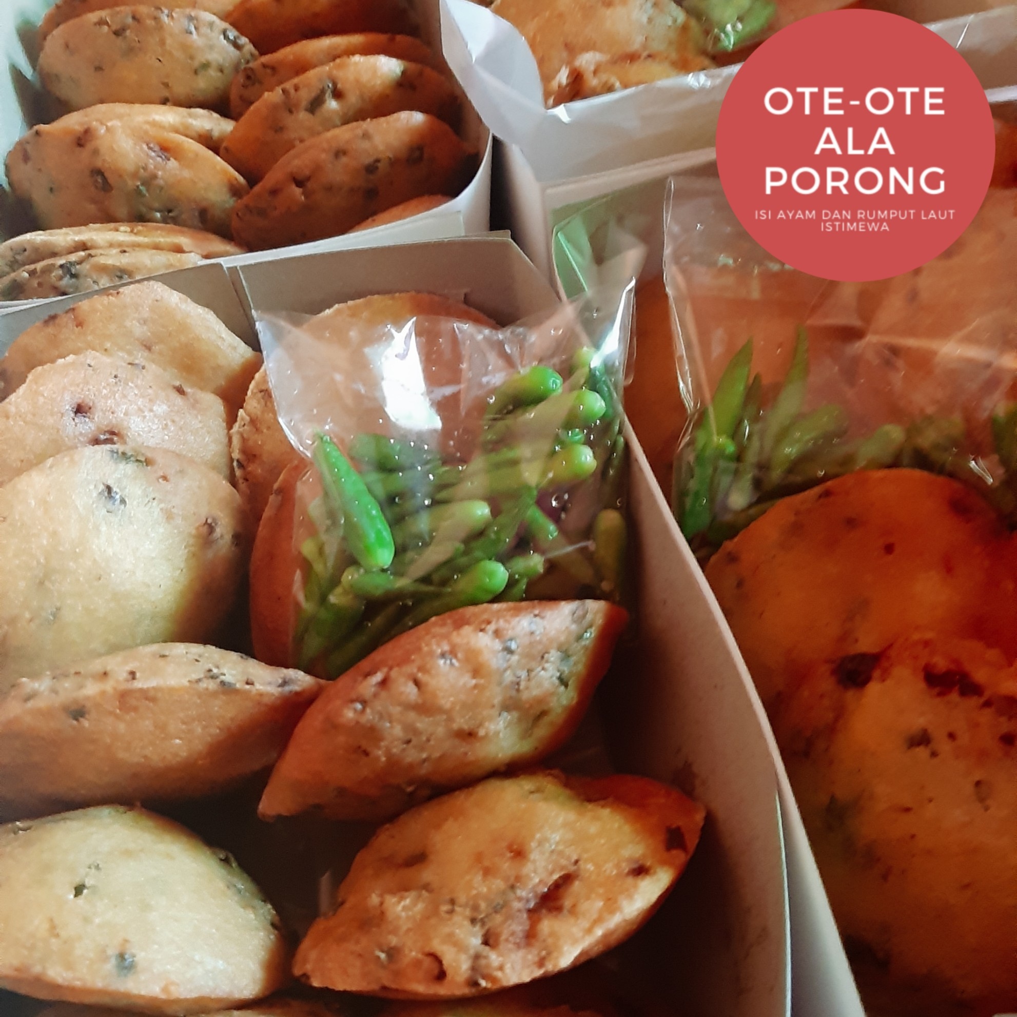 Ote-ote Ala Porong Isi Ayam dan Rumput Laut Diameter +/- 8 cm Goreng : 7000/pcs Frozen : 6500/pcs Free Ongkir Khusus Kecamatan Sidoarjo Bisa WA : 085935115410