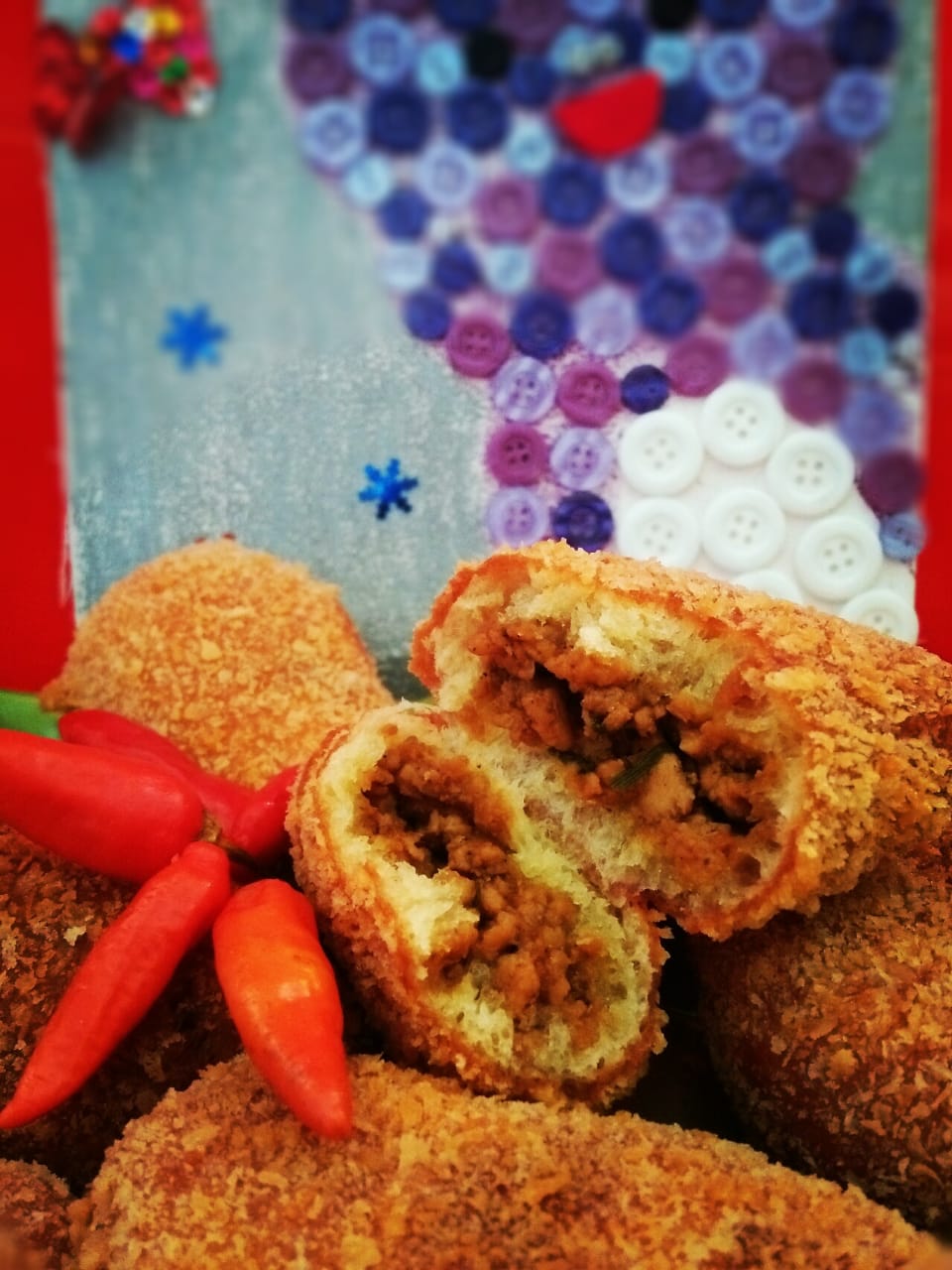 Roti goreng yang empuk dengan filling tumis daging ayam yang juicy, membuat roti goreng yang full butter ini terasa sangat enak ketika disantap. Wajib dicoba lho! (1 pak isi 5 pc)