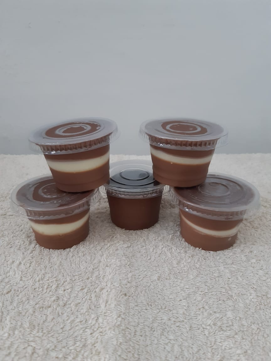 Pudding terbuat dari sari kedelai. Pudding coklat dengan vla vanila di tengah. Pemesanan H-1. Harga belum termasuk ongkir.