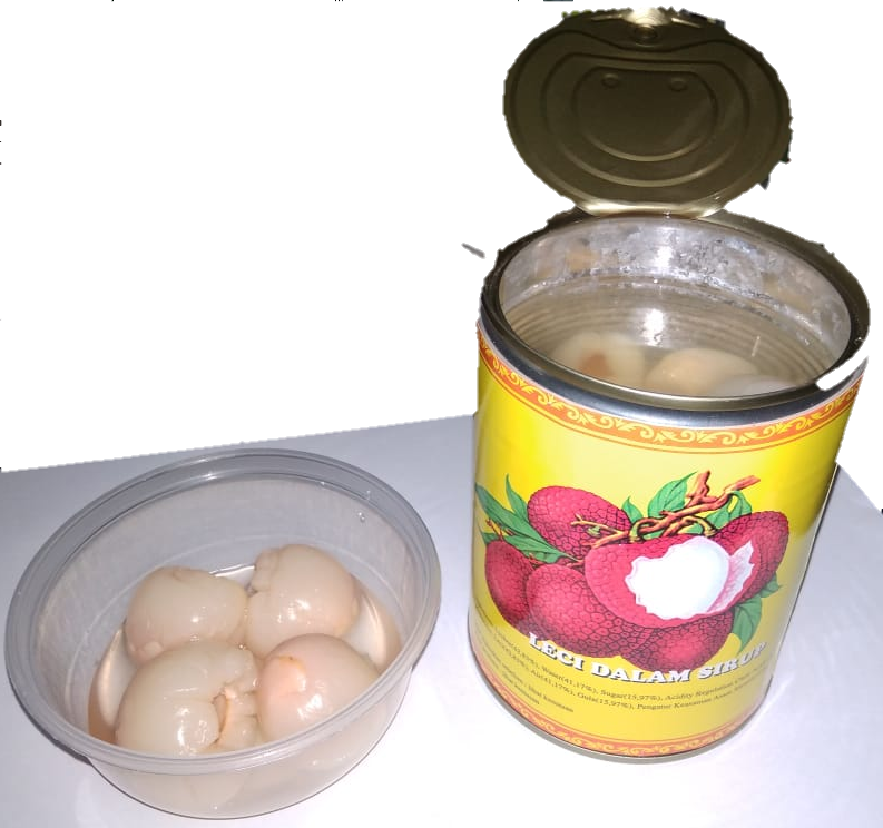 Buah Leci kaleng siap diolah untuk berbagai macam minuman, puding maupun salad buah.